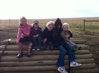 Saturday we decided to take the bulls out of the cow herd. Jared drove the truck and trailer through the water hub and got it all set up and then he took off on the quad to the opposite corner of the field to round up the bulls. Dave was out to help so I gladly left the rounding up to them, instead I played around the bales with five little kids, Leah, Emry, Lily Calum and Armin! We had fun taking pictures and exploring!